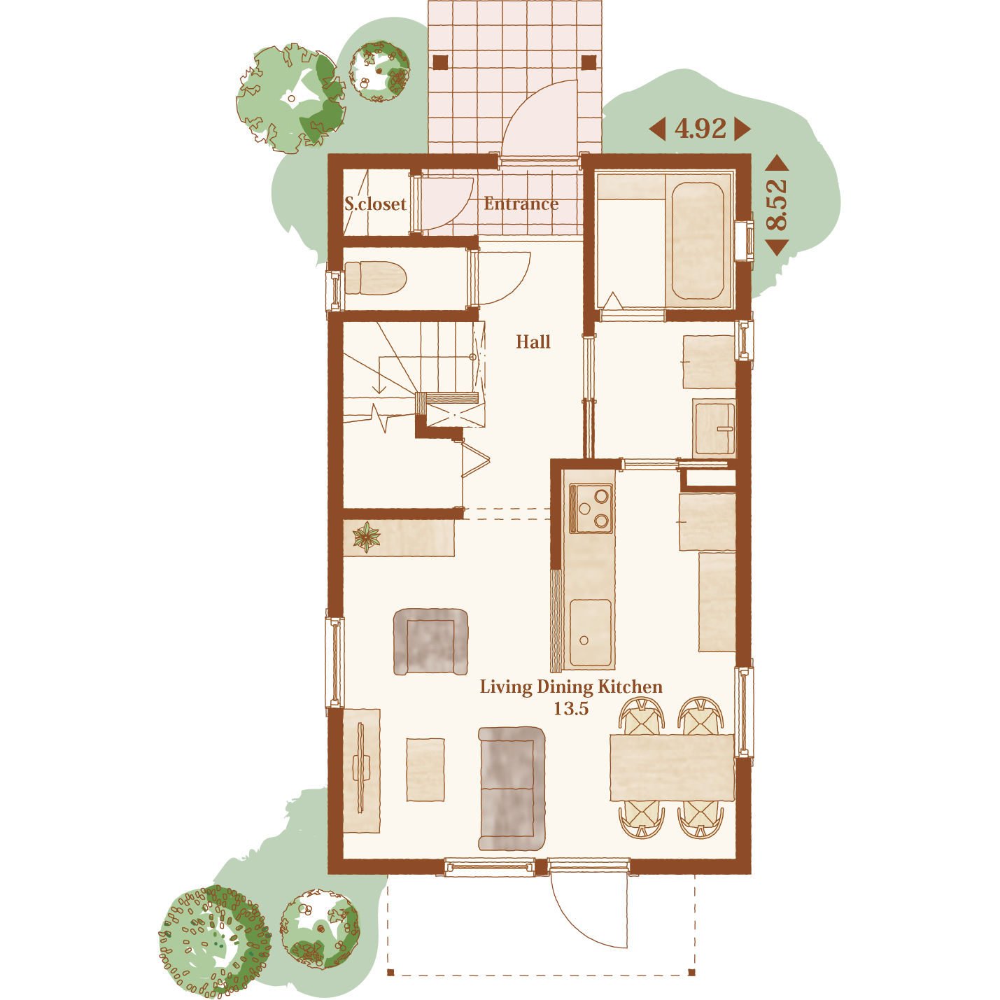 一般的な広さの家の間取りをそのままの形でコンパクトにしただけでは窮屈さを感じたり、動線が悪く生活のし辛い間取りになります。